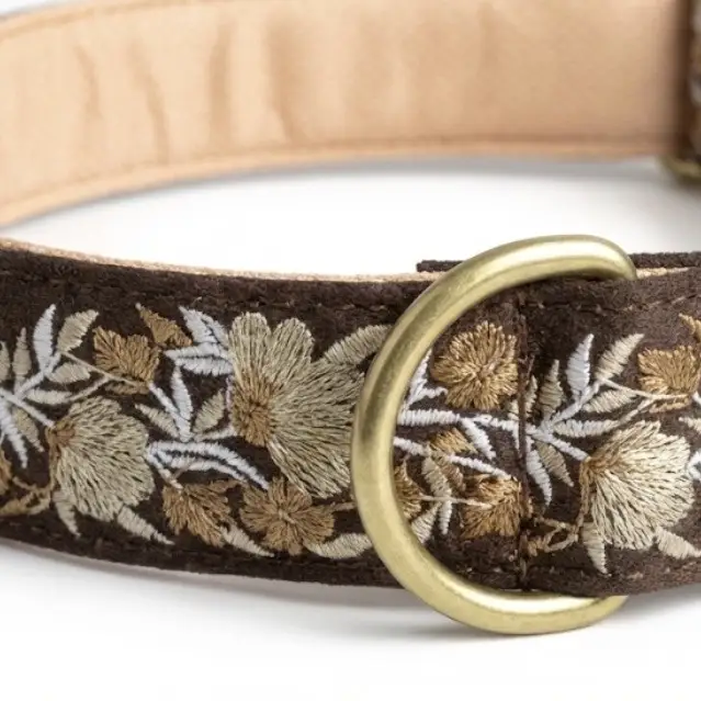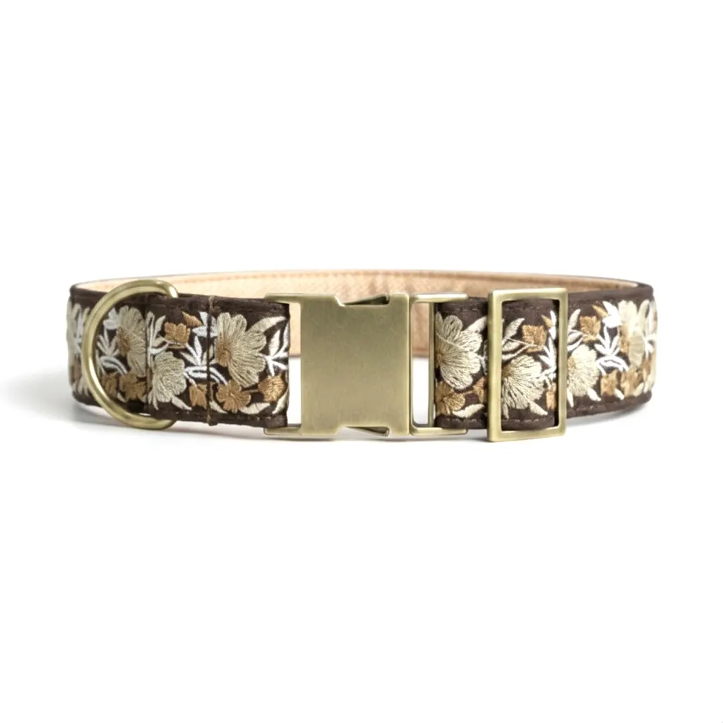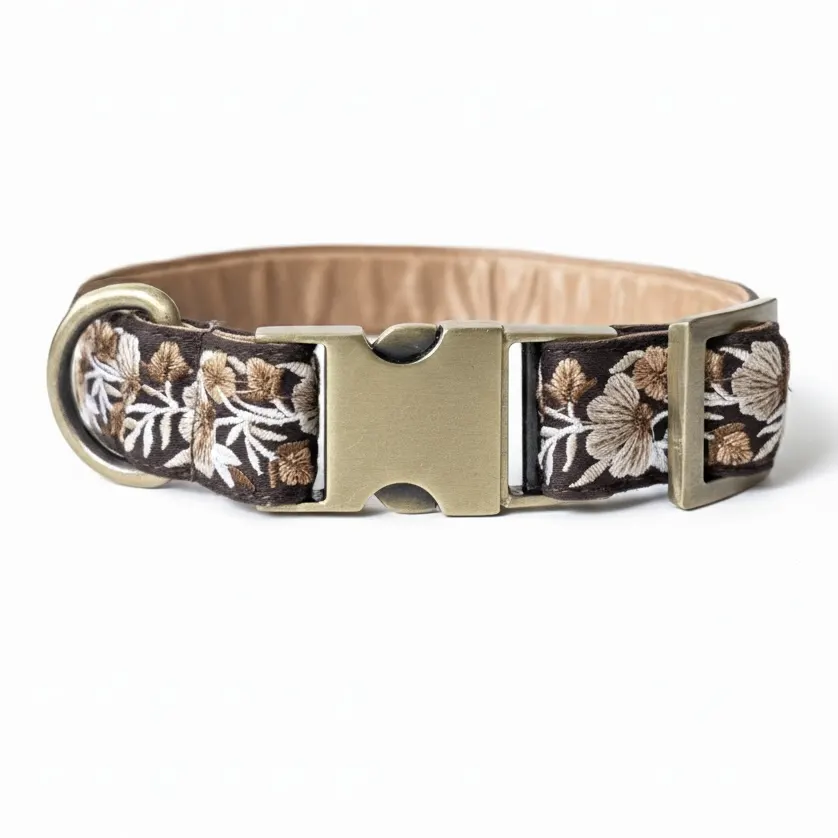 SUNBLOOM – Embroidered Floral Neck Collar in Brown & Gold